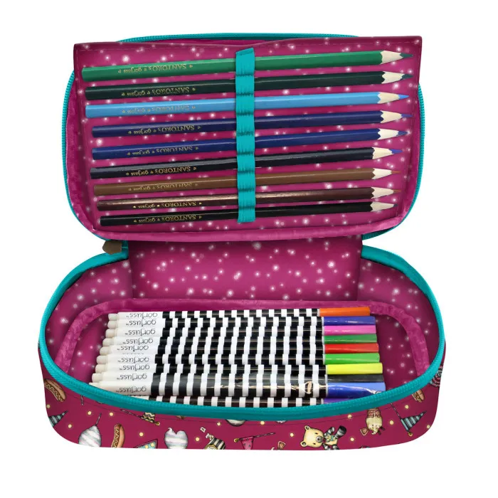 This maroon-colored pencil case is perfect for any child who is ready to unleash their creativity and develop their artistic skills. It is ideal for use at school, home, or art class, and the transparent lid allows children to easily see the contents inside, so they can choose the right tools without having to dig through the case. At 6L capacity, your child will be able to hold all their favorite tools in one place with Pencil Case Gorjuss Fireworks Maroon!