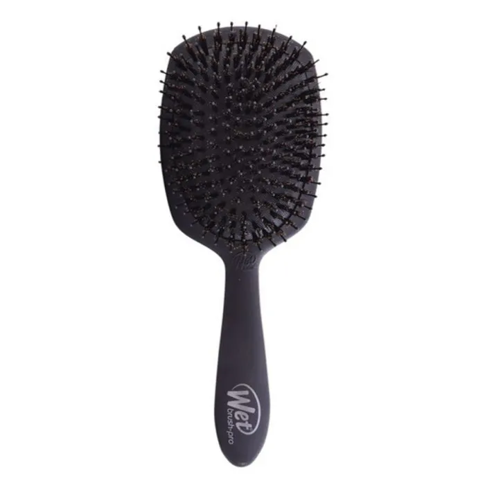 The Brush Pro Epic Shine Deluxe The Wet Brush Epic Professional Black is the ultimate hairbrush for achieving a perfectly smooth and shiny finish. Whether you have long or short hair, curly or straight, this brush is perfect for all hair types. It features patented IntelliFlex bristles that gently detangle your hair without pain or damage. The ergonomic handle is comfortable to hold, and the space-age design is both functional and stylish.