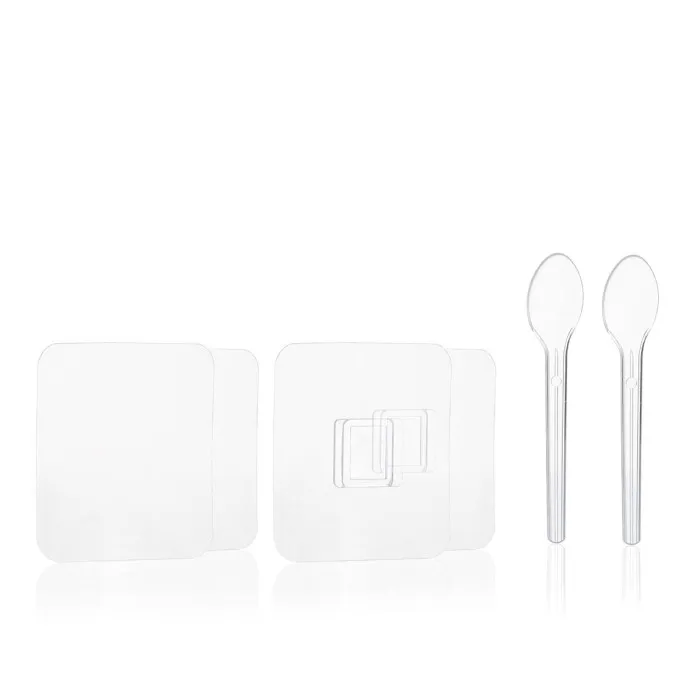 The containers come with lids with guides and central grip handles, making them easy and convenient to extract. This modern and practical set includes 2 teaspoons, 2 single-sided vertical adhesives, and 2 double-sided horizontal adhesives, which make them easy to install without the need for assembly or tools. The high-quality adhesives (Nano PU Gel) are extremely robust, providing a firm hold and can be easily removed without leaving any surface residue.