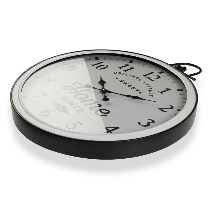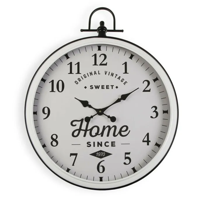 The sturdy metal construction ensures this clock will stand the test of time while adding a charming accent to your home. Whether hung in the kitchen, living room, or bedroom, this clock is sure to make a statement. The bold, easy-to-read numbers and simple black and white design make it easy to tell the time, even from across the room.