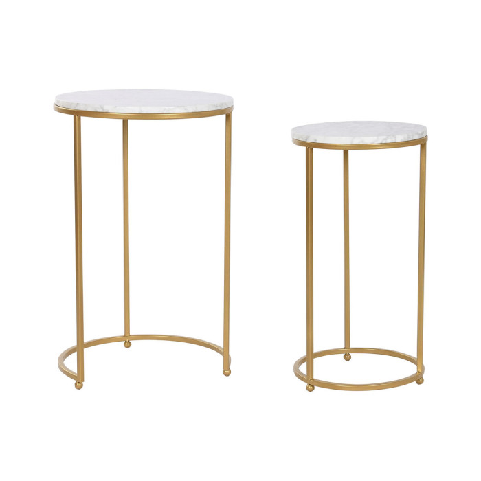 Set of 2 tables Home ESPRIT Golden Metal Marble 40 x 40 x 64 cm