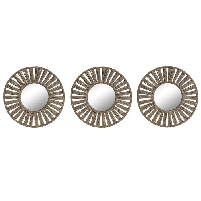 Mirror Set Home ESPRIT Natural Tropical 20 x 1 x 20 cm (3 Pieces)
