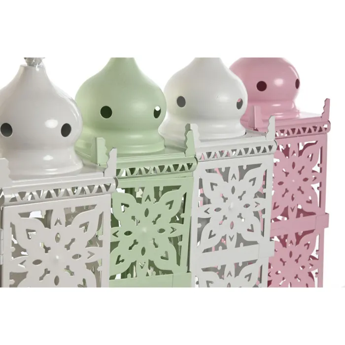 If you want to add a touch of originality to your home, you will do so with Lantern Home ESPRIT White Green Pink Iron Oriental 10 x 10 x 30 cm (4 Units). These exquisite lanterns are the perfect decorative solution for anyone looking to create a unique ambiance in their living space. Crafted from durable iron, each lantern features an intricate oriental design that captures the essence of traditional craftsmanship while adding a modern flair to your decor.