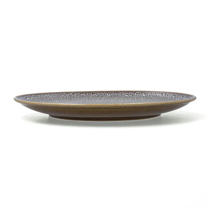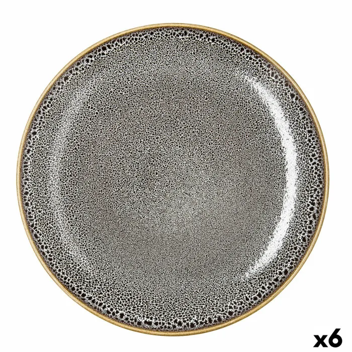 If you take pride in the aesthetics of your home and appreciate the seamless blend of functionality and style, the Flat Plate Ariane Jaguar Freckles Brown Ceramic 27 cm (6 Units) is an essential addition to your kitchenware collection. Crafted with a profound attention to detail, this set of ceramic plates showcases a unique speckled brown finish that adds a touch of elegance to any dining experience. Whether it's a casual breakfast or an elaborate dinner party, these plates provide the perfect backdrop for your culinary creations, allowing colors and presentations to truly shine.