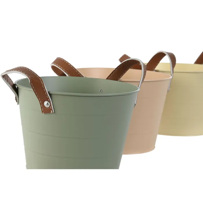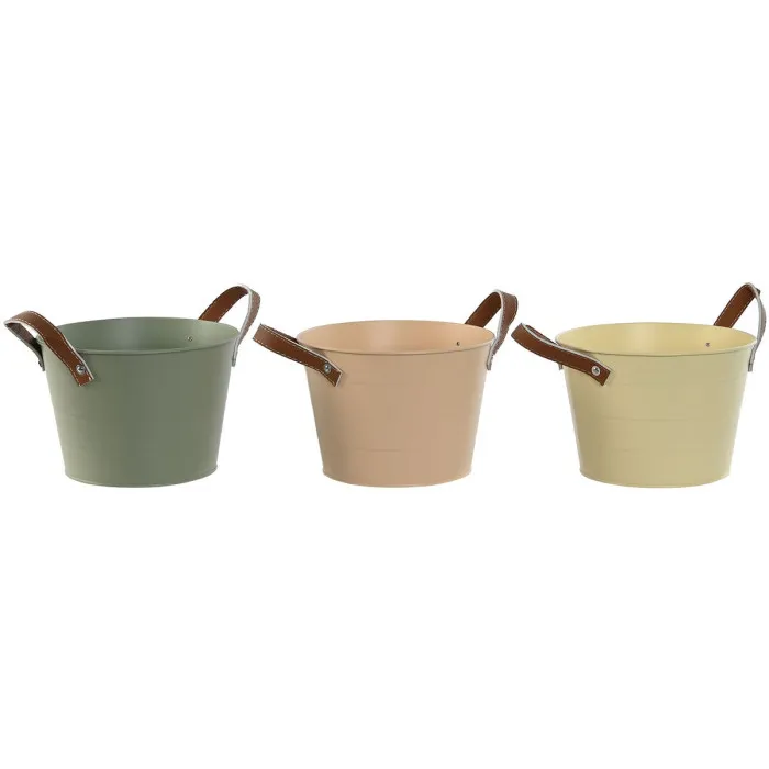 Planter Home ESPRIT Yellow Green Light Pink Polyurethane Metal 20 x 20 x 14 cm (3 Units)