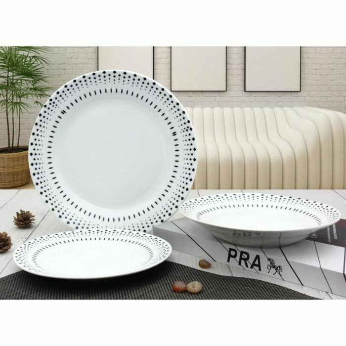 If you take pride in your home and cherish every detail, the Dinnerware Set Rice Grain White Black Porcelain 18 Pieces is an exquisite addition that will enhance your dining experience. Crafted from high-quality porcelain, this dinnerware set combines elegance and practicality, making it perfect for both everyday use and special occasions. The harmonious blend of white and black colors in a rice grain texture adds a touch of sophistication to your table setting, while also providing versatility to complement various interior styles.