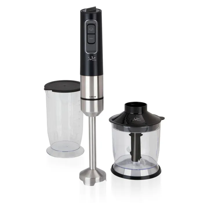 Introducing the Hand-held Blender JATA Black 1000 W, a versatile and powerful addition to your kitchen appliances. Designed for those who value quality and efficiency, this electric blender is perfect for a variety of culinary tasks, from whipping up smoothies to pureeing soups. At a robust 1000 watts, it effortlessly blends, mixes, and crushes ice, making it an essential tool for any home chef. Its sleek black and silver design not only adds a touch of elegance to your kitchen but also ensures durability and reliability in everyday use.