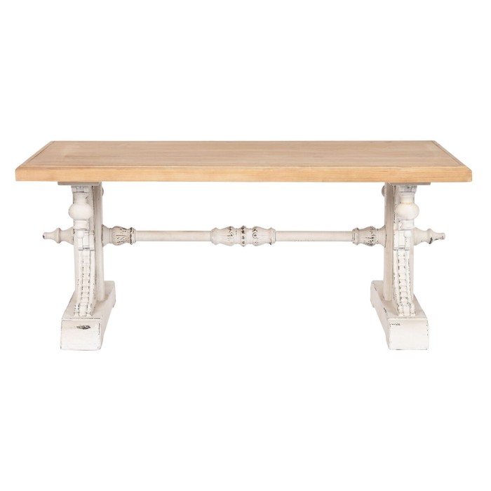Crafted from high-quality fir wood and MDF, this table ensures durability and longevity. The natural properties of fir wood make it resistant to wear and tear, while the MDF provides a smooth surface that is easy to maintain. Measuring approximately 110 x 65 x 46 cm, this table offers ample surface space for your favorite decorative items, books, or even your coffee cups during intimate gatherings with friends and family. Additionally, the sturdy construction ensures that it can withstand daily use without compromising on style.