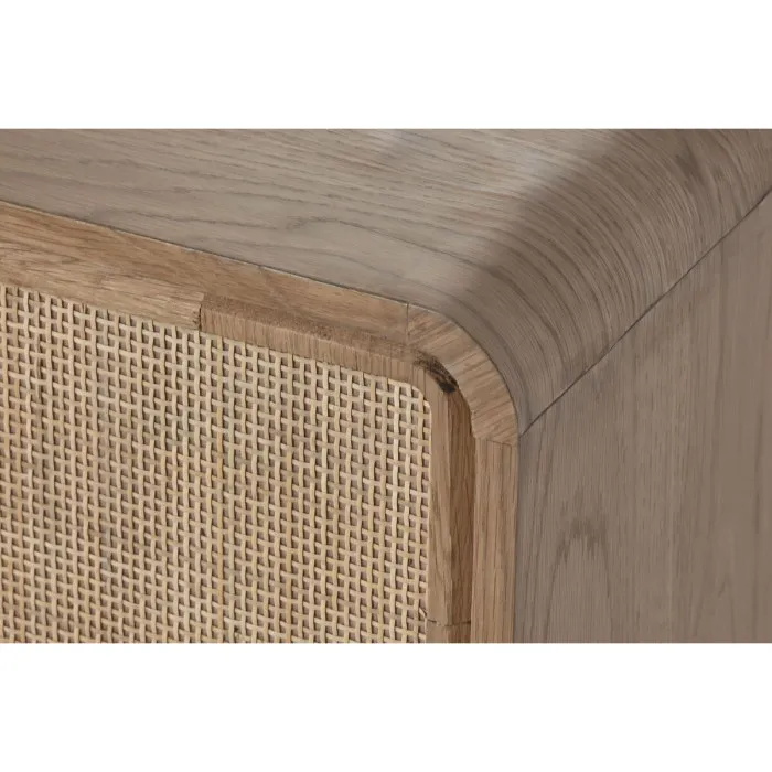 The gorgeous oak finish works harmoniously with the intricate rattan weaving, creating a visually appealing contrast that draws the eye. Its approximate dimensions of 157 x 40 x 46 cm provide ample space for your television while the two shelves offer additional storage for media devices, books, or decorative items. This furniture piece not only serves a practical purpose but also elevates the overall aesthetic of your room. Imagine this enchanting furniture set against a backdrop of lush greenery or vibrant decor, enhancing your home’s character.