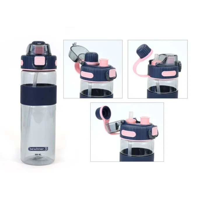 Bottle with Lid and Straw Bewinner Multicolour Transparent 900 ml
