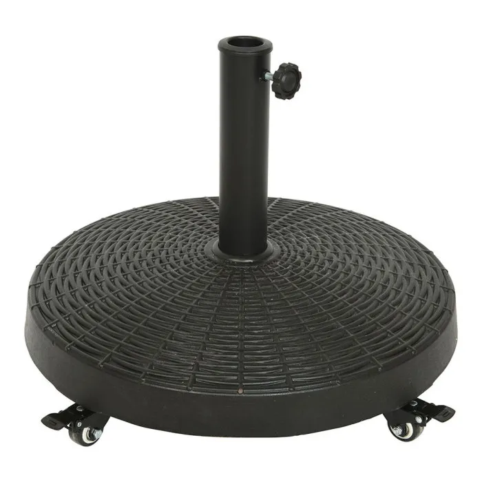 If you want to add a touch of originality to your home, you will do so with Base for beach umbrella 841097 Black Polyethylene Steel With wheels Ø 52 cm. This stylish and functional base is designed to securely hold your beach umbrella, ensuring you can enjoy your outdoor experiences without any distractions caused by wind or unstable conditions. Crafted from high-quality polyethylene and durable steel, this base is not only practical but also adds a sophisticated black finish that complements a variety of outdoor decor styles.