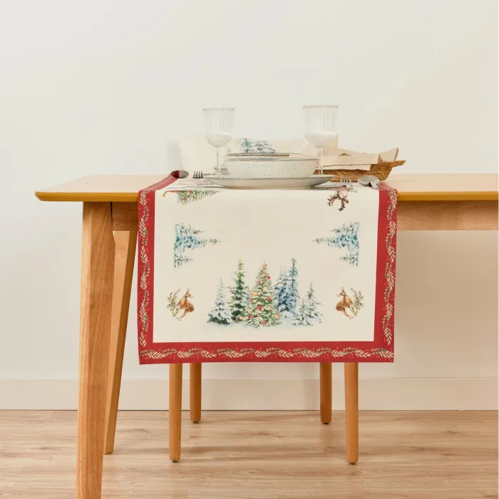 If you love to create a warm and inviting atmosphere in your home during the festive season, the Table Runner Belum Christmas Landscape 45 x 140 cm is the perfect addition to your holiday decor. This elegantly designed table runner features a beautiful Christmas landscape that captures the essence of the season, making it ideal for festive gatherings and family dinners. Made from high-quality 100% cotton, it showcases both durability and style, ensuring that it can be used year after year as you create lasting memories with loved ones.