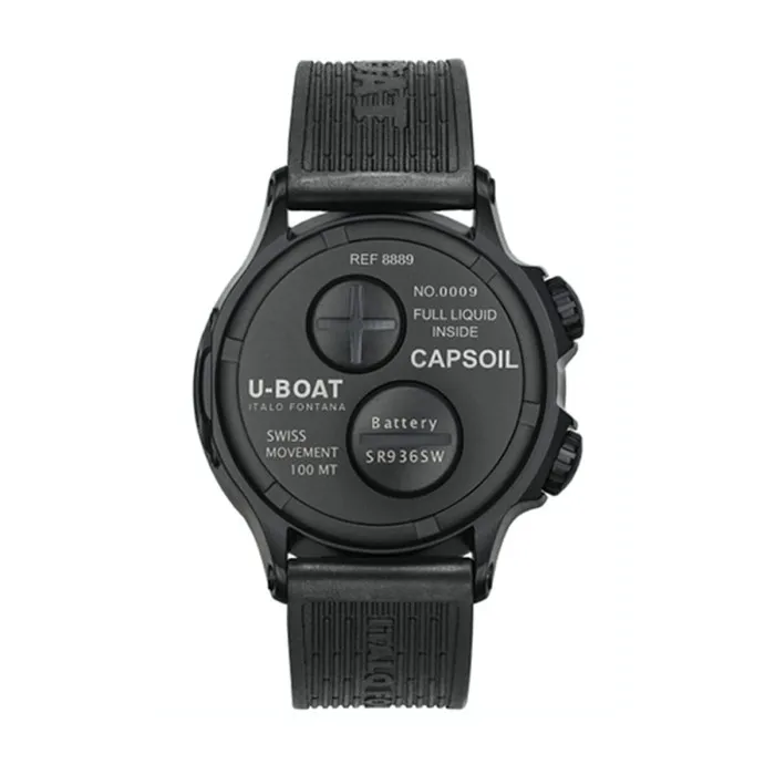 Introducing the Men's Watch U-Boat U8889/A Black, a sleek and sophisticated timepiece that is sure to turn heads. The black natural rubber bracelet provides a comfortable fit for everyday wear, while the quartz movement ensures precise timekeeping.