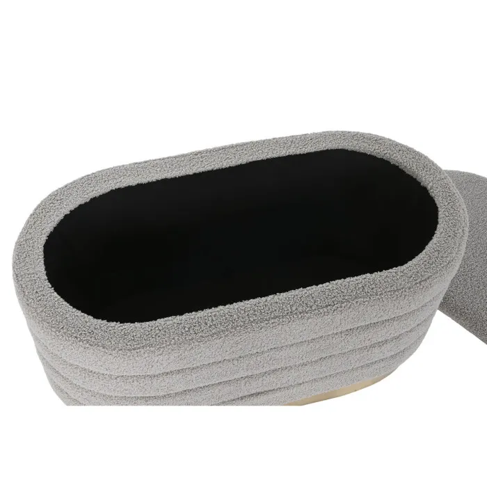 The golden and light grey color scheme adds sophistication and elegance, making it a versatile choice that complements various interior styles. Whether you place it in your living room, hallway, or bedroom, this bench not only serves as a stylish seating option but also enhances the overall aesthetics of your home. The soft velvet texture invites you to sit down and relax, while the sturdy metal structure provides reliable support for anyone who takes a seat.