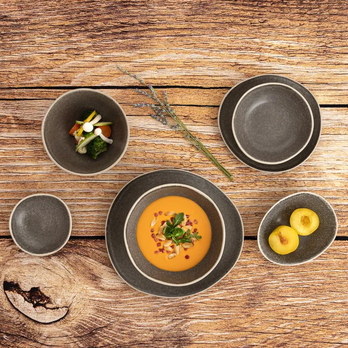 Made of high-quality ceramic material, these deep plates are designed with relief patterns that add a touch of elegance to your table setting. The grey colour makes them versatile enough to match any style of home decor. Measuring approximately 19 cm, these plates are perfect for serving soups, stews, and other hearty dishes.