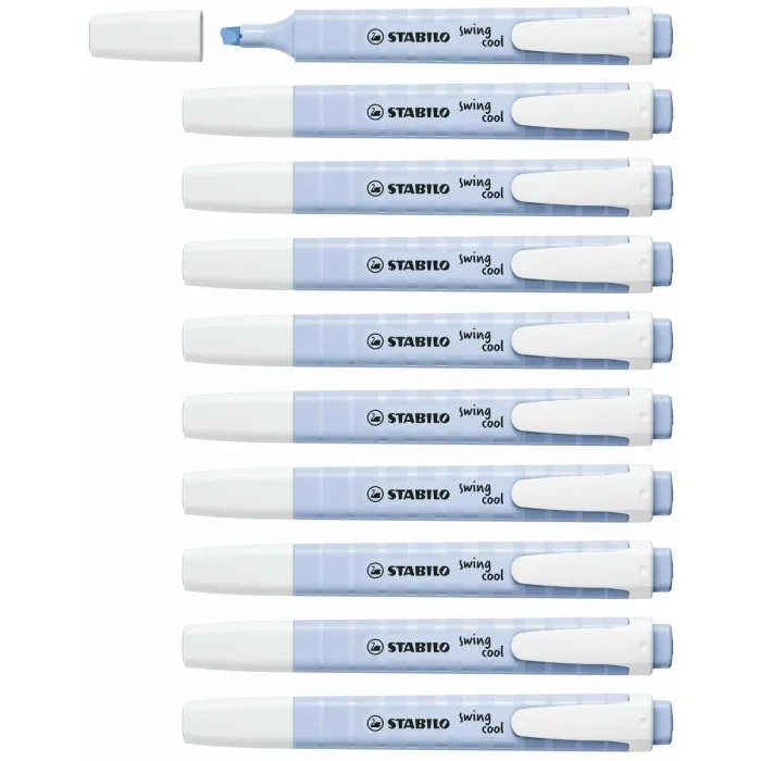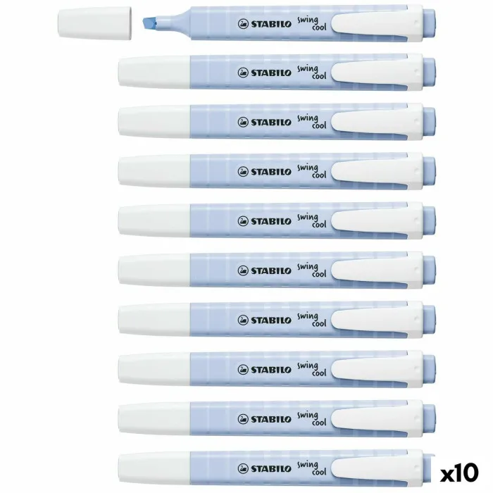 Each marker is designed for comfort and convenience, featuring a triangular barrel for easy gripping during long writing sessions. Whether you are annotating documents, preparing for a presentation, or simply jotting down reminders, the Fluorescent Marker Stabilo Swing Cool Light Blue 10 Units will be your reliable companion. Don't just settle for ordinary highlighters; invest in these markers to elevate your note-taking to a new level. Be the envy of your colleagues and showcase your organizational skills while making your workspace more fun and colorful!