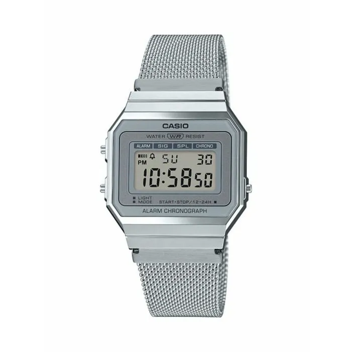 If you are looking for a stylish timepiece that combines functionality with a modern aesthetic, the Men's Watch Casio A700WEM-7AEF Silver is a perfect choice. This remarkable wristwatch showcases an elegant rectangular design that is both timeless and contemporary, making it an ideal accessory for various occasions. Made from a blend of durable resin and stainless steel, this watch not only embodies strength but also offers a sleek, polished finish that is sure to catch the eye. The silver color adds a touch of sophistication, allowing it to complement any outfit, whether you are dressing up for a formal event or keeping it casual. Its unisex appeal means it is perfect for anyone who appreciates quality and style.