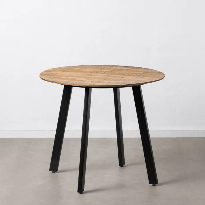 If you want to add a touch of originality to your home, you will do so with Dining Table 90 x 90 x 77 cm Natural Black Wood Iron. This stunning dining table seamlessly blends contemporary design with rustic charm, making it the perfect centerpiece for your dining area. The harmonious combination of natural black wood and iron accents creates an inviting atmosphere, ideal for both family gatherings and entertaining guests. With its generous dimensions of 90 x 90 cm and a height of 77 cm, this dining table comfortably accommodates multiple diners, offering ample space for delightful meals and cherished conversations.