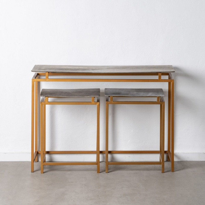 If you want to add a touch of originality to your home, you will do so with Hall 109 x 38,1 x 78,7 cm Golden Metal Silver (3 Units). This stunning hall furniture set combines both functionality and aesthetic appeal, making it a perfect addition to any stylish entryway or hallway. Crafted from high-quality metal, it showcases a sleek and modern design that captures the beauty of golden and silver tones. The striking contrast between these two colors not only enhances the visual appeal but also complements a variety of interior styles, from contemporary to classic.
