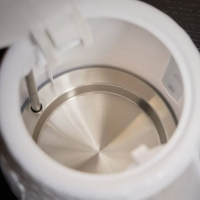 This kettle has a powerful 2200 W motor that allows you to boil water quickly and efficiently, which saves you time in the morning when making tea or coffee. Its plastic material makes it lightweight and easy to handle, so you can pour hot water without any problems.