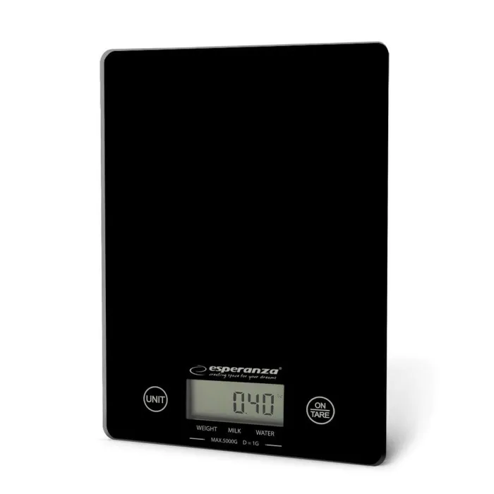The kitchen scale Esperanza EKS002K Black 5 kg is an essential tool for any home cook or baking enthusiast. Designed with both style and functionality in mind, this sleek black scale will seamlessly blend into your kitchen décor while providing accurate measurements for all your culinary needs. Whether you're portioning ingredients for a flavorful new recipe or weighing out portions for meal prep, this kitchen scale guarantees precision with its capable 1 g increment accuracy, allowing you to achieve the perfect measure every time.