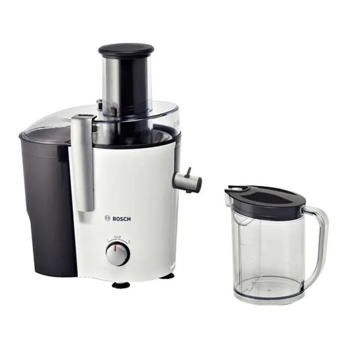 The Liquidiser BOSCH MES25A0 700 W White Black 1,25 L is an exceptional household appliance designed to make your blending and juicing tasks effortless. With a powerful 700 W motor, this liquidiser efficiently handles a variety of ingredients, from fruits to vegetables, creating smooth textures that are perfect for smoothies, soups, and sauces. Its sleek white and black design not only adds a sophisticated touch to your kitchen but also complements any modern decor. Whether you're a health enthusiast looking to whip up nutritious drinks or a culinary pro experimenting with new recipes, this liquidiser is an indispensable tool in your kitchen arsenal.
