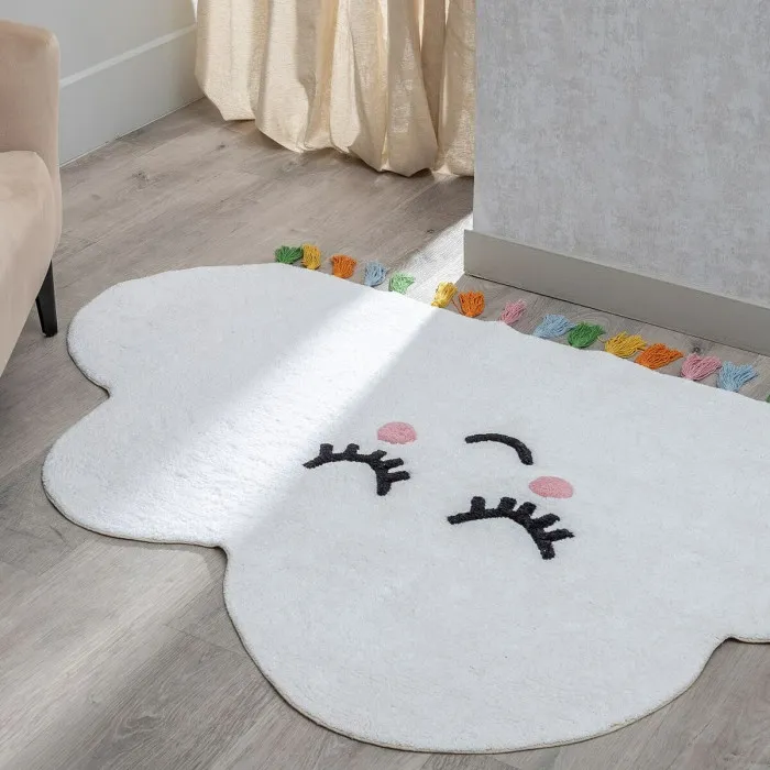 Experience the ultimate comfort and style with our Playmat Cotton 150 x 90 cm. Made with high-quality cotton material, this carpet is not only soft and cozy, but also durable and long-lasting. The white colour and charming design featuring lovely clouds make it a perfect addition to your home decor, especially if you have children.