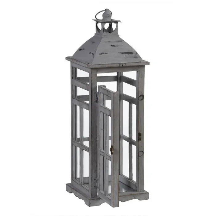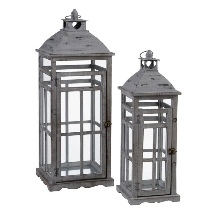 Buy Lantern 28 x 28 x 75 cm Candleholder Grey Fir wood (2 Units) on the Benjuriy Shop Website