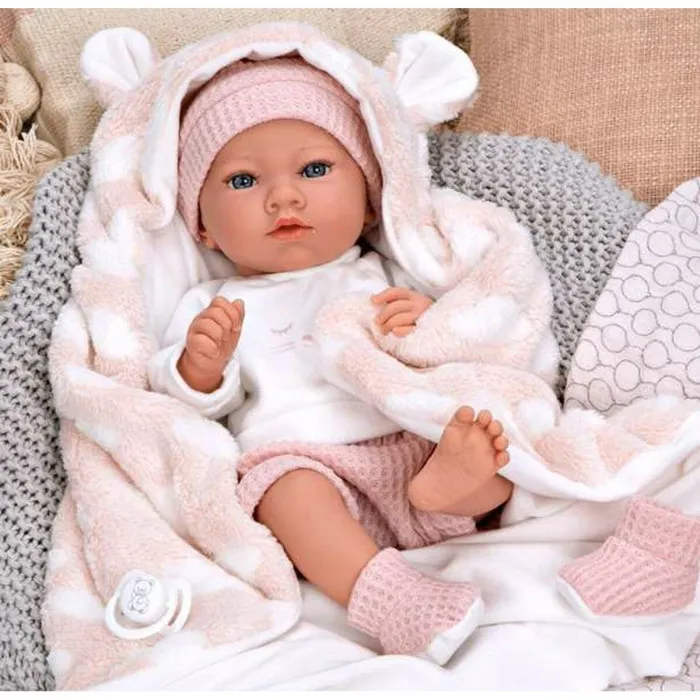 The beautifully crafted Arias Elegance features a soft body and lifelike features that are sure to delight children and encourage imaginative play. Styled in the classic baby doll fashion, the Arias Elegance is easy to dress up in any outfit and comes with a cozy blanket for added comfort.