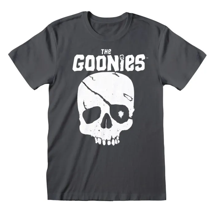 Introducing the Short Sleeve T-Shirt The Goonies Skull and Logo Graphite, a perfect blend of style, comfort, and nostalgia for fans of the classic adventure film. This staple piece is designed to resonate with both devoted followers of the Goonies and new fans alike, making it a versatile addition to any wardrobe. With its striking graphite color and unique skull and logo design, this t-shirt captures the adventurous spirit that the movie embodies, allowing you to wear a piece of cinematic history wherever you go.