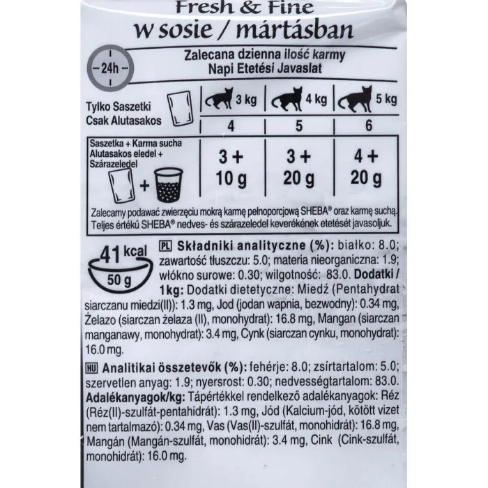 But that's not all. Sheba Fresh & Fine Chicken Turkey Birds 300g is also infused with essential minerals such as copper, iron, manganese, iodine, and zinc, which are important for your cat's health. The food is specially formulated for adult cats, making it the perfect choice for any cat owner looking to nourish their pets.