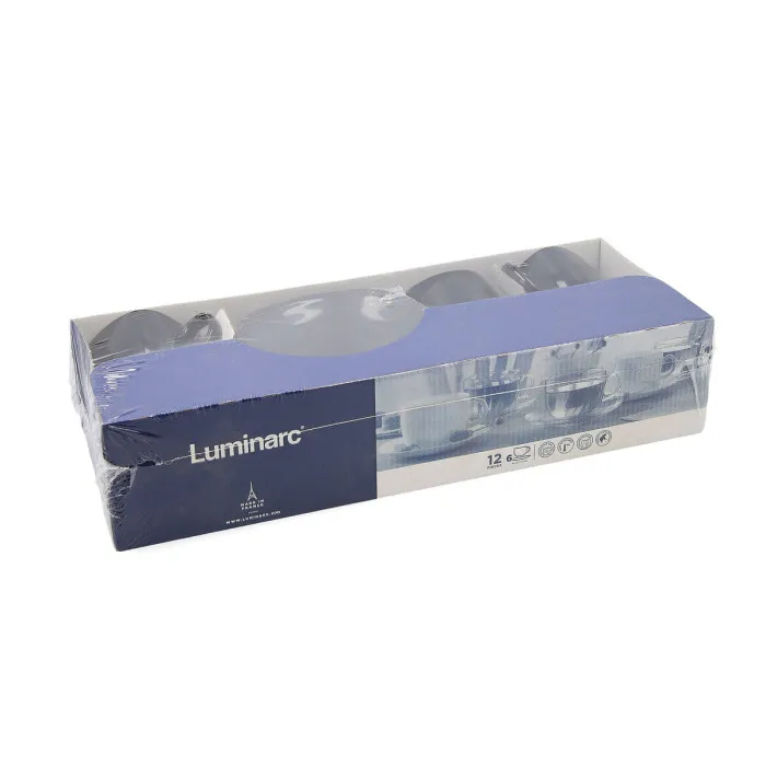 Introducing the luxurious Set of Mugs with Saucers Luminarc Carine Black Glass, a stunning addition to any kitchen or dining environment. This exquisite set includes a total of 12 pieces, with 6 beautifully crafted black glass mugs and 6 matching saucers, each exquisitely designed to enhance your beverage experience. With its elegant and contemporary look, these mugs are not only functional but also serve as a visually striking piece of tableware that can elevate any dining setting, whether it's a casual dinner at home or an extravagant holiday gathering.