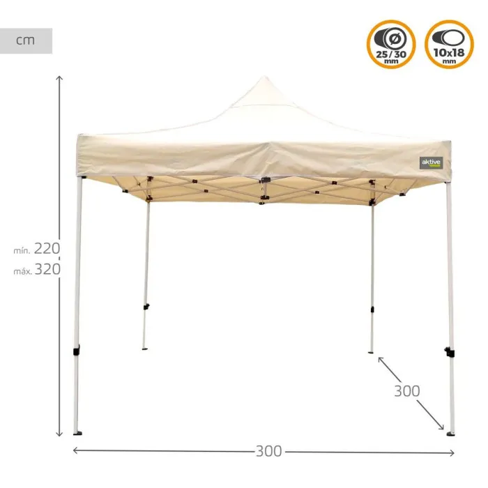 Transform your outdoor experiences with the Gazebo Aktive Foldable Adjustable height Steel Polyester 420D Oxford Cream 300 x 320 x 300 cm. This versatile gazebo is designed for both relaxation and entertainment, providing a stylish and functional space where you can host gatherings, enjoy family barbecues, or simply unwind in your garden. Its elegant cream color blends seamlessly with nature, adding a touch of sophistication to any outdoor area. Whether you're at the beach, a park, or your backyard, this gazebo ensures that your events are comfortable and stylish.