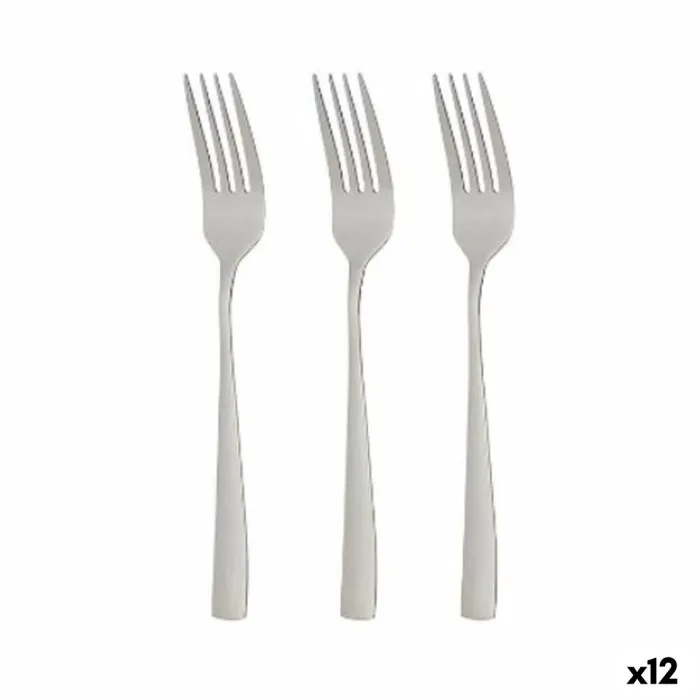 The Fork Set Silver Stainless steel 2,5 x 21,3 x 0,3 cm (12 Units) is perfect for those who love to entertain. Whether you're hosting a formal dinner party or a casual get-together, these forks are ideal for serving all kinds of dishes, from starters to desserts. The set includes 12 forks, so you'll always have enough for all your guests. The approximate dimensions of each fork are 2.5 x 21.3 x 0.3 cm, ensuring that they're the perfect size for comfortable use.