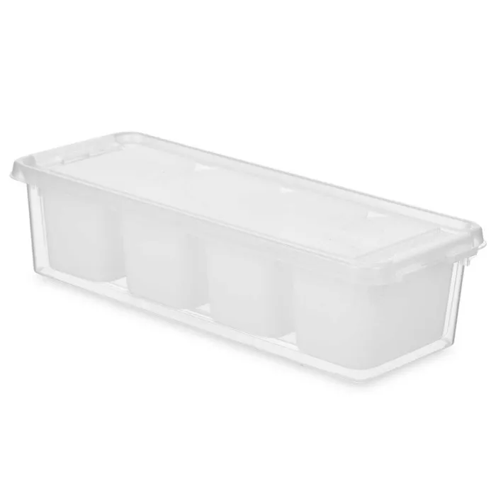 Are you tired of rummaging through your fridge only to find expired condiments or misplaced snacks? The Fridge Organiser White Transparent Plastic 37,5 x 9 x 14,3 cm (12 Units) is the perfect solution for maintaining order and maximizing space in your kitchen. Designed with practicality and convenience in mind, this set includes 12 individual organisers that allow you to streamline your food storage efficiently. Crafted from durable plastic, the organisers are not only functional but also add a sleek, modern touch to your refrigerator's interior.
