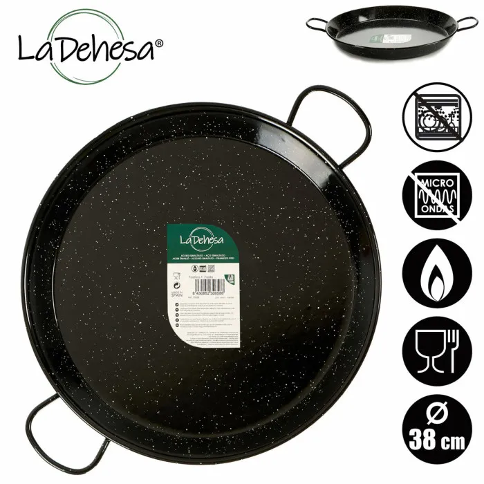 If you're passionate about culinary excellence and meticulous about your kitchen tools, the Pan Ø 38 cm Enamelled Steel (6 Units) is an essential addition to your cookware collection. Crafted from high-quality enamelled steel, this pan not only offers durability but also ensures even heat distribution for perfectly cooked meals. The elegant black finish adds a touch of sophistication to your kitchen aesthetic, making it suitable for both casual family dinners and elegant gatherings.