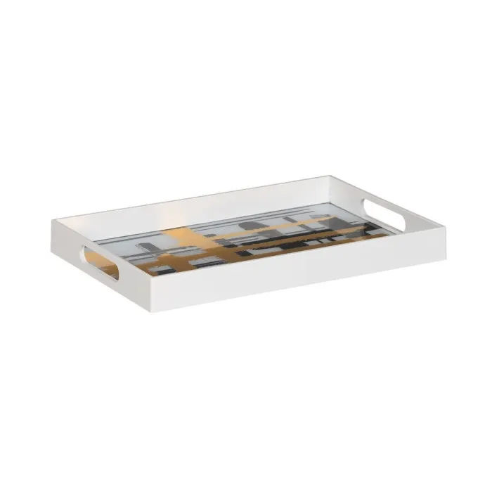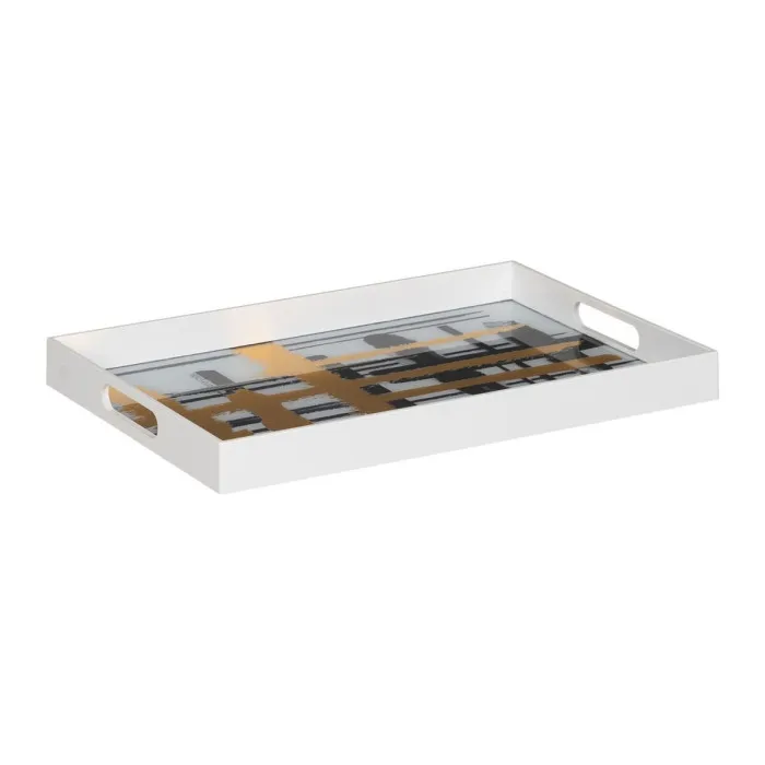 Upgrade your home decor and entertain in style with this Snack Tray White Black Golden PVC Crystal Abstract. Add it to your shopping cart today and enjoy the convenience and sophistication it brings to your life.