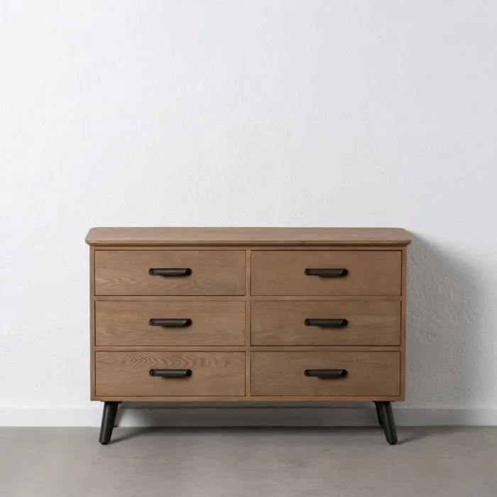 If you want to add a touch of originality to your home, you will do so with Sideboard PAUL Black Natural 120 x 41 x 77 cm. This elegant sideboard seamlessly combines style and functionality, making it a perfect addition to any living space. Crafted with a durable iron frame and natural fir wood, it promises not only to enhance the aesthetic of your home but also to provide lasting quality. The striking contrast between the sleek black finish and natural wood elements creates a unique look that can complement both modern and traditional decor styles.