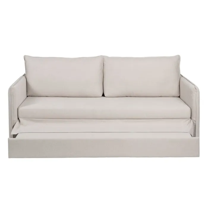 One of the standout features of this beige polyester linen sofa is its versatility. With the ability to convert into a sofabed, it can accommodate both sitting and sleeping needs. This makes it a perfect option for overnight guests or for anyone who values a multi-functional living space. Assembly is required, but the included instructions make the process straightforward and stress-free.