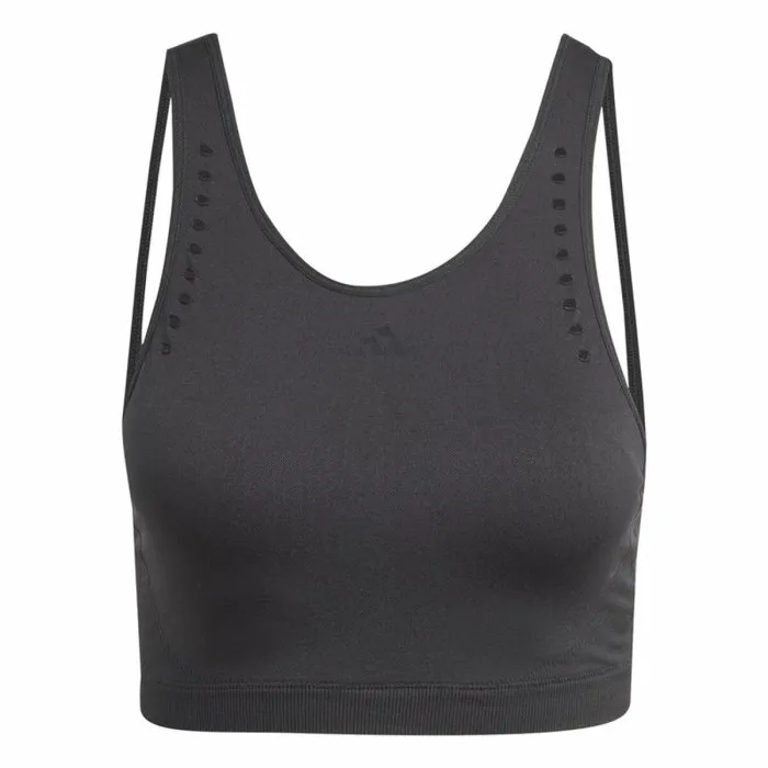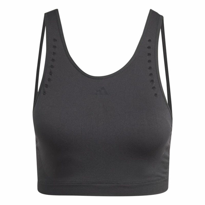 Introducing the Sports Bra Adidas Aeroknit Black, an essential piece for every active woman's wardrobe. Designed with the modern athlete in mind, this sports bra offers a perfect combination of style, comfort, and functionality. The sleek black color not only makes it a versatile addition to your fitness ensemble but also ensures you look effortlessly chic while breaking a sweat. Whether you're hitting the gym, going for a run, or practicing yoga, this sports bra is specifically engineered to provide the support you need during all types of physical activities.