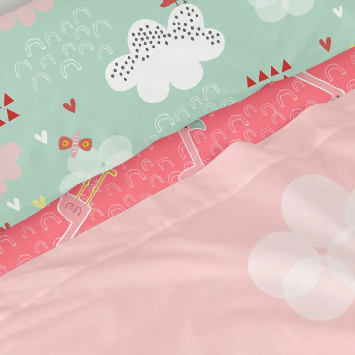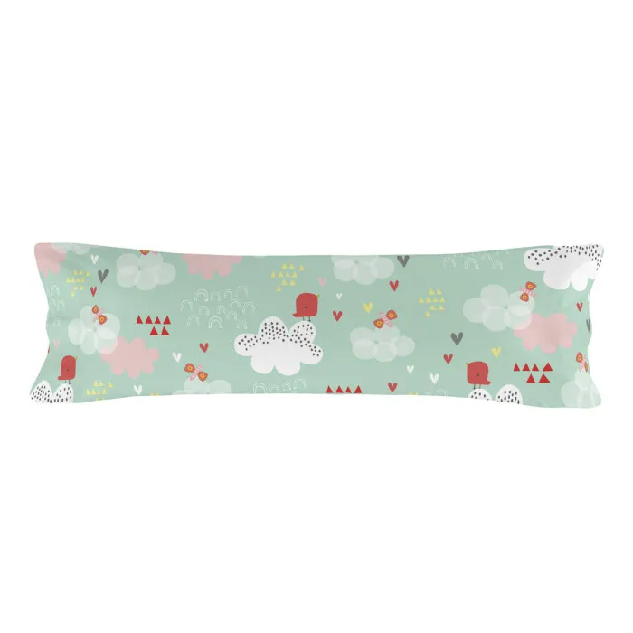 The Bedding set HappyFriday Moshi Moshi Hola is not just about looks; it’s practical too. The set includes a spacious top sheet sized at 180 x 270 cm and a pillowcase measuring 45 x 125 cm, providing ample coverage and comfort for a single bed. Each piece in the set is designed to be machine washable at 40ºC, which simplifies maintenance. However, care instructions recommend washing the items inside out and avoiding bleach or dry cleaning to preserve the vibrant colours and fabric integrity. This attention to care will ensure that your bedding retains its fresh appearance even after multiple washes.