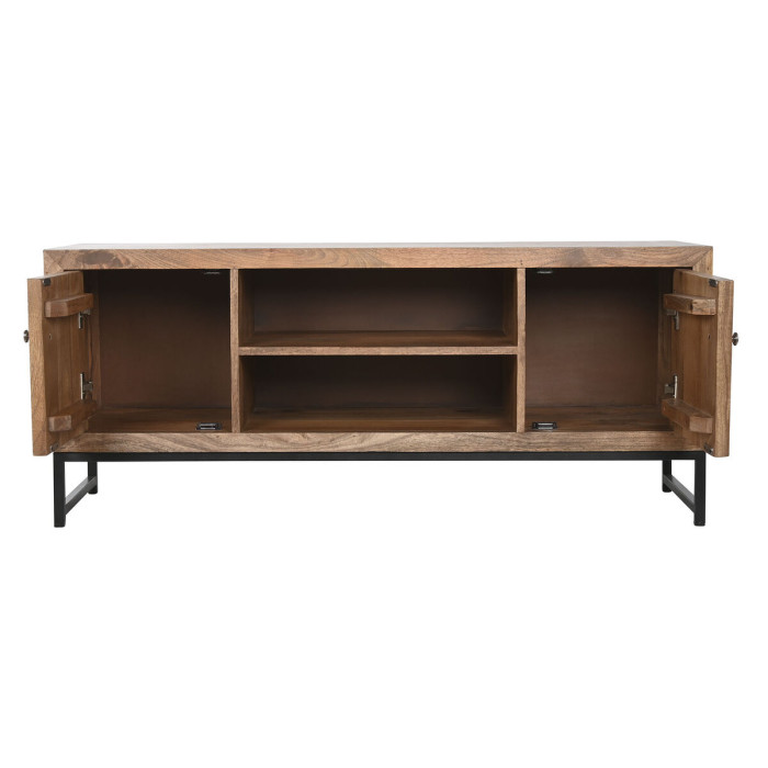 TV furniture Home ESPRIT Brown Black Silver Mango wood Mirror 130 x 40 x 55,5 cm