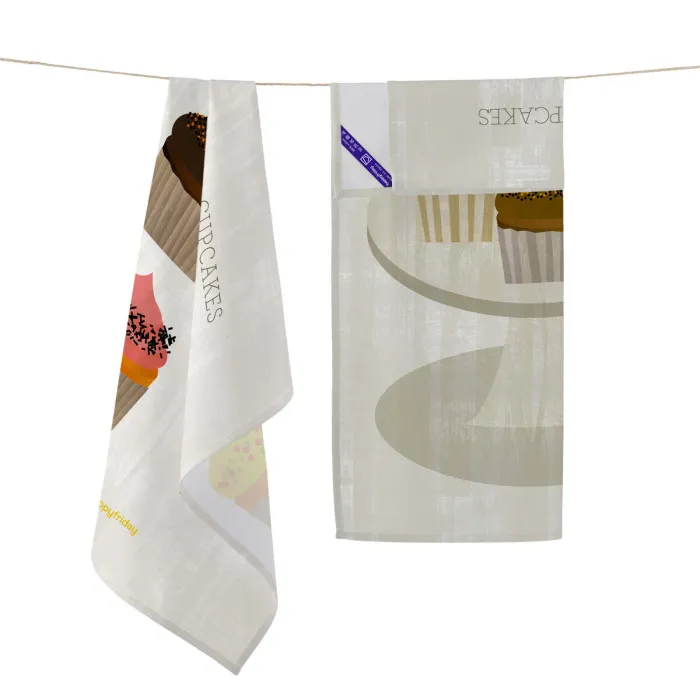Kitchen Cloth HappyFriday Cupcakes Multicolour 70 x 50 cm (2 Units)