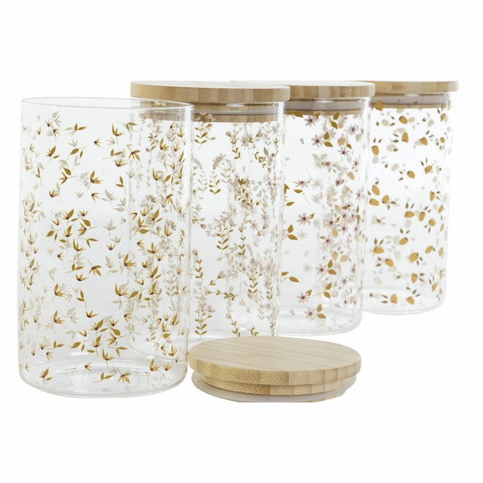 Tin DKD Home Decor Bamboo Borosilicate Glass Shabby Chic 1 L 10 x 10 x 17 cm (4 Units)