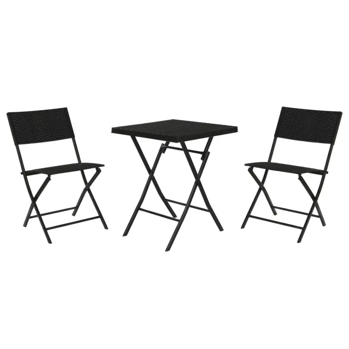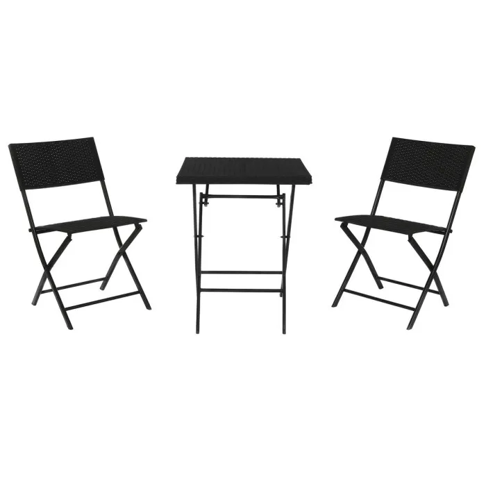 Table set with 2 chairs Home ESPRIT Black Steel synthetic rattan 58 x 58 x 71,5 cm