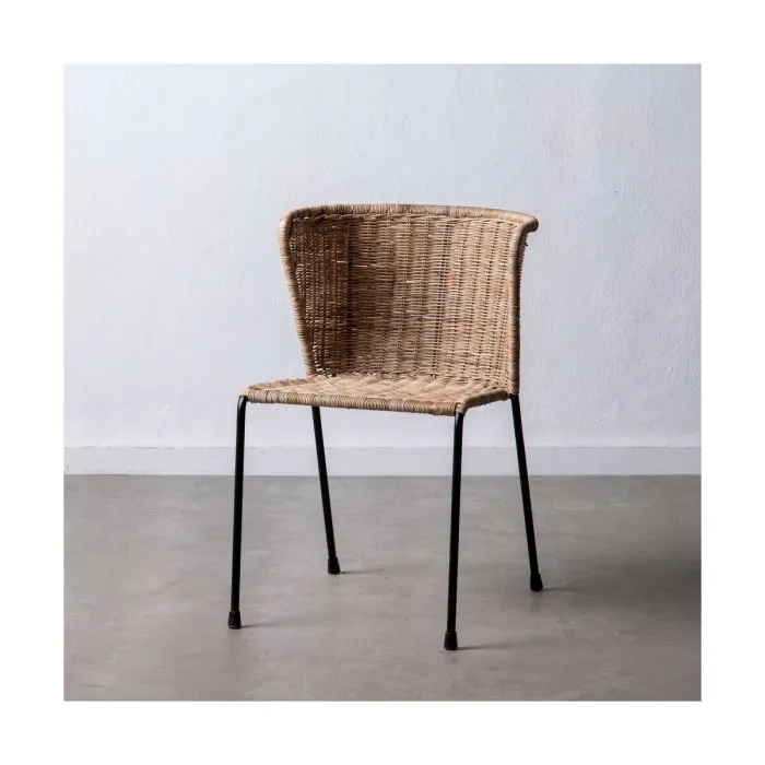 Introducing the Dining Chair 50 x 54 x 77 cm Natural Black Metal Natural Fibre, a beautiful piece of furniture that combines style and functionality. Designed for those who appreciate modern aesthetics, this chair brings a refreshing touch to any dining area or kitchen. The elegant natural black finish of the metal frame gracefully contrasts with the warm tones of the natural fibre seating, creating a seamless blend that enhances the overall decor. With its streamlined silhouette and thoughtful craftsmanship, this chair is perfect for both casual dining and formal gatherings.