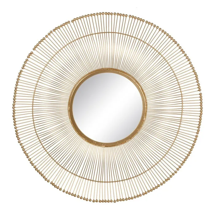 If you want to add a touch of originality to your home, you will do so with Wall mirror 76 x 4 x 76 cm Golden Metal. This stunning mirror is designed to be a statement piece in any room, seamlessly blending function and aesthetic appeal. With its elegant golden metal finish, it captures light beautifully, making spaces feel brighter and more welcoming. Not only does it serve the practical purpose of reflection, but it also acts as a captivating decorative element that can enhance your interior design.
