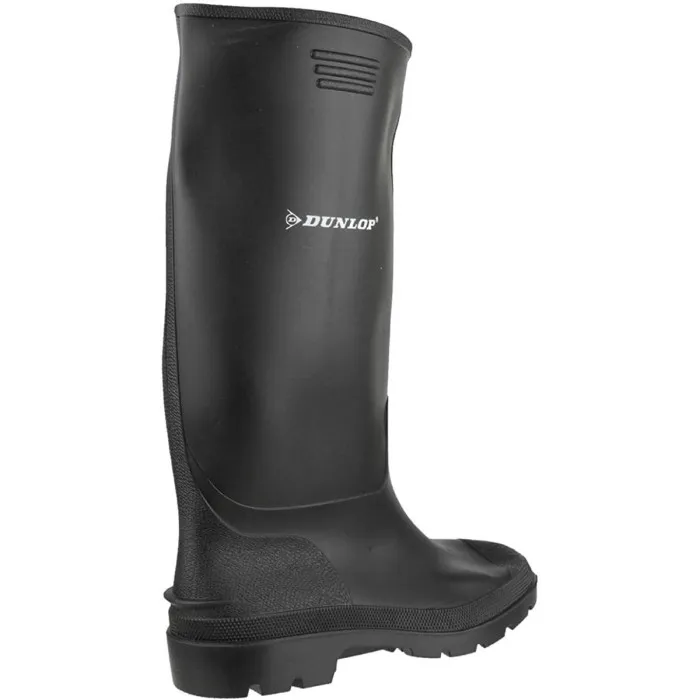 Introducing the exceptional Wellington boots Dunlop Black Polyester PVC, designed for those who prioritize both protection and wellness in demanding environments. Crafted from high-quality materials, these boots are specifically engineered to withstand the rigors of various outdoor activities while ensuring your feet remain comfortable and secure. The classic black color of these Wellington boots adds a touch of sophistication, making them suitable for a range of settings, from casual farm work to outdoor adventures.