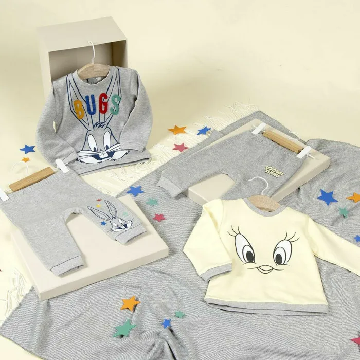 Children’s Tracksuit Looney Tunes Grey is the perfect blend of style, comfort, and durability that every parent desires for their little ones. Crafted from high-quality 100% cotton, this tracksuit is designed with the needs of babies in mind, ensuring that they can move freely and comfortably while looking adorable. The soft fabric is gentle against your child's sensitive skin, making it suitable for all-day wear. With its classic grey color, this tracksuit adds a touch of sophistication to your child’s wardrobe, allowing for easy pairing with various accessories.
