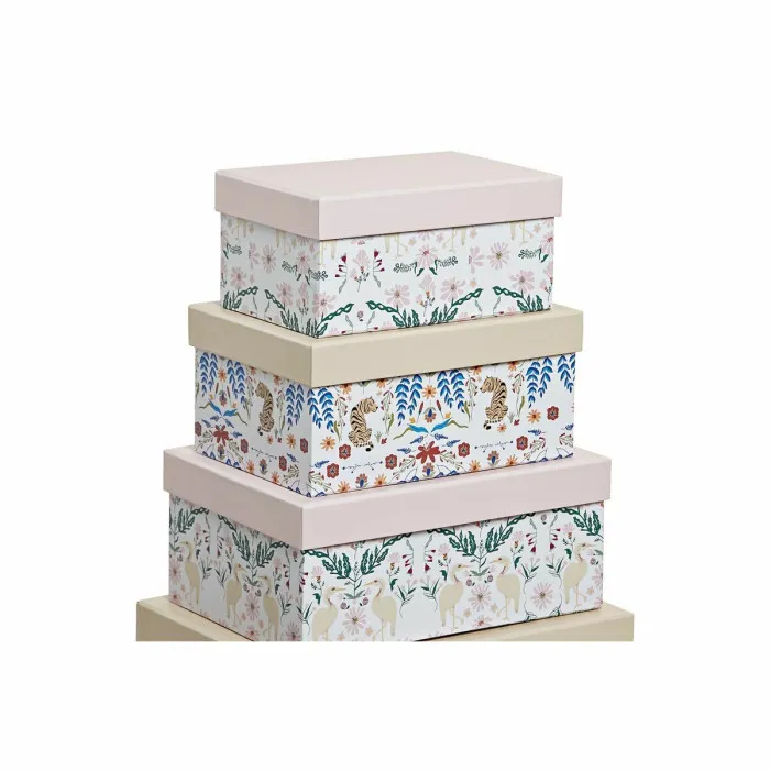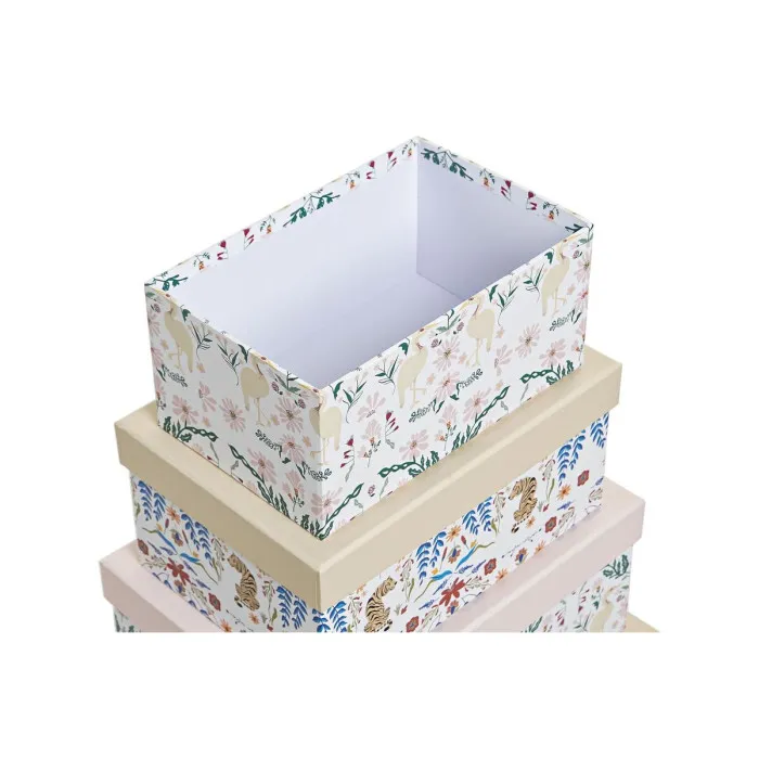 If you are looking for a stylish and functional way to organize your home, the Set of Stackable Organising Boxes DKD Home Decor animals Flowers Cardboard (43,5 x 33,5 x 15,5 cm) is the perfect solution. This set includes ten beautifully designed boxes that not only help to keep your space tidy but also add a touch of charm to your decor. The playful animal and floral designs make these boxes a delightful addition to any room, whether it's a child's bedroom, a nursery, or a stylish living area. Made from high-quality cardboard, these boxes are both lightweight and durable, making them ideal for various storage needs while also being easy to move around.